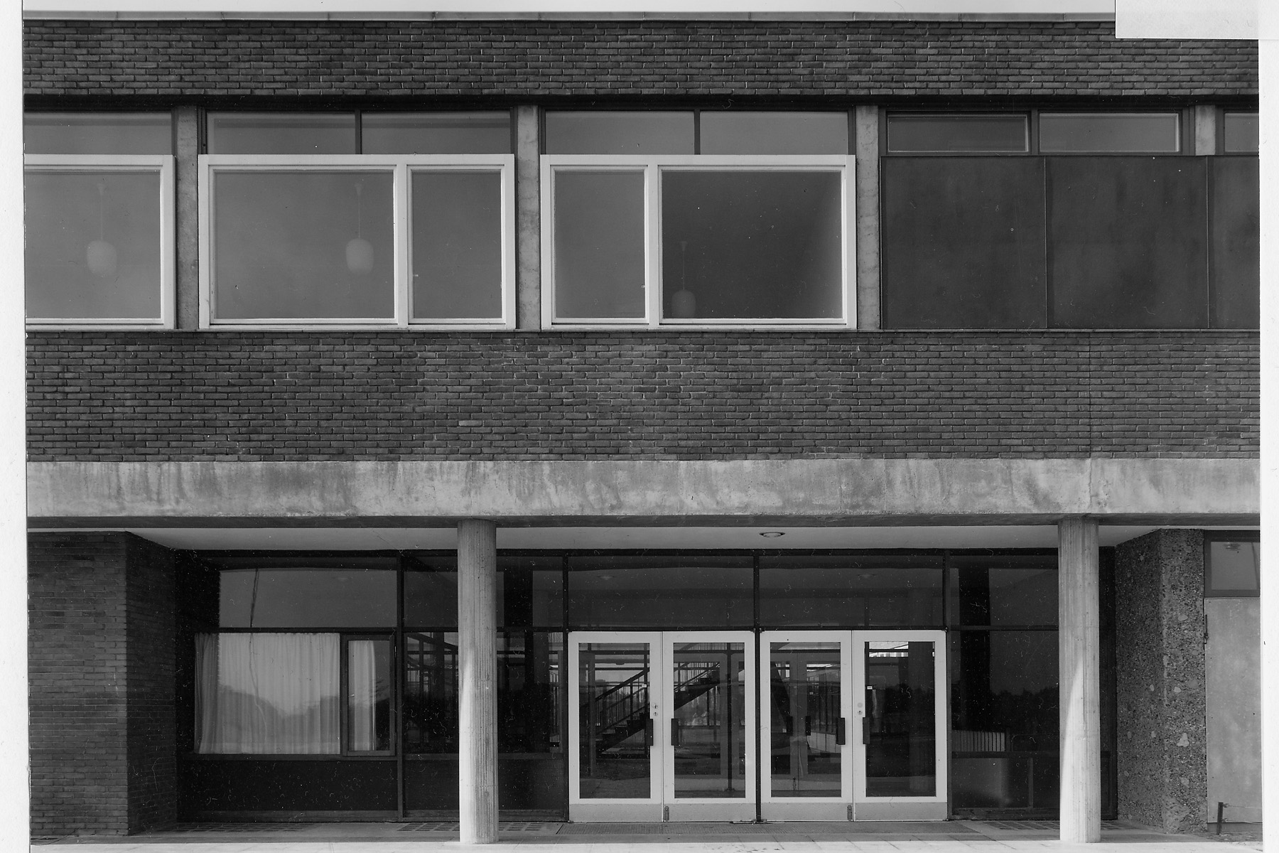 Wettbewerb 1. Preis. 20-klassige Schule mit Sporthalle und Aula. Die Aula konnte wegen finanzieller Schwierigkeiten bis heute nicht realisiert werden.